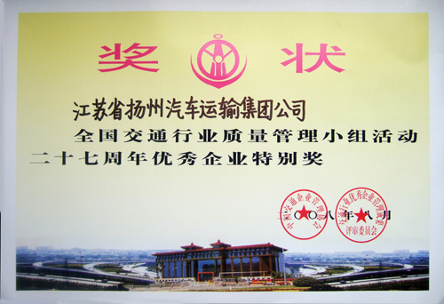 全國交通行業(yè)質量管理小組活動二十七周年優(yōu)秀企業(yè)特別獎獎狀