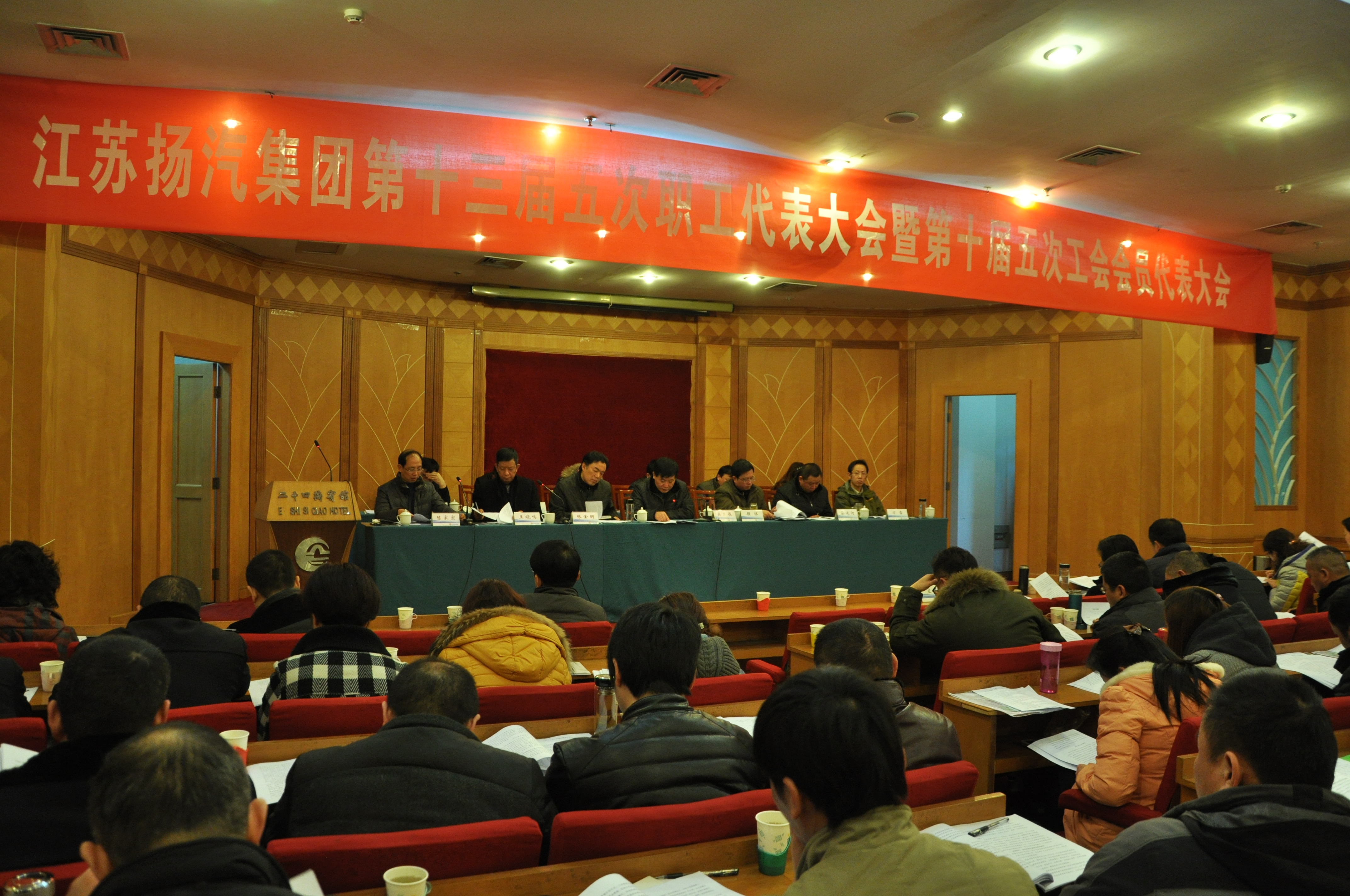 江蘇省揚州汽車運輸集團公司第十三屆職工代表大會五次會議暨第十屆工會會員代表大會五次會議于2014年3月6日在二十四橋賓館召開。集團公司領導吳忠俊、顧懷、張金明、蔡運河、王曉鳴、萬雷、陳家宏及106名職工代表參加大會,各處室部門負責人,二級單位及控股、參股單位黨政工主要負責人16人列席了會議。