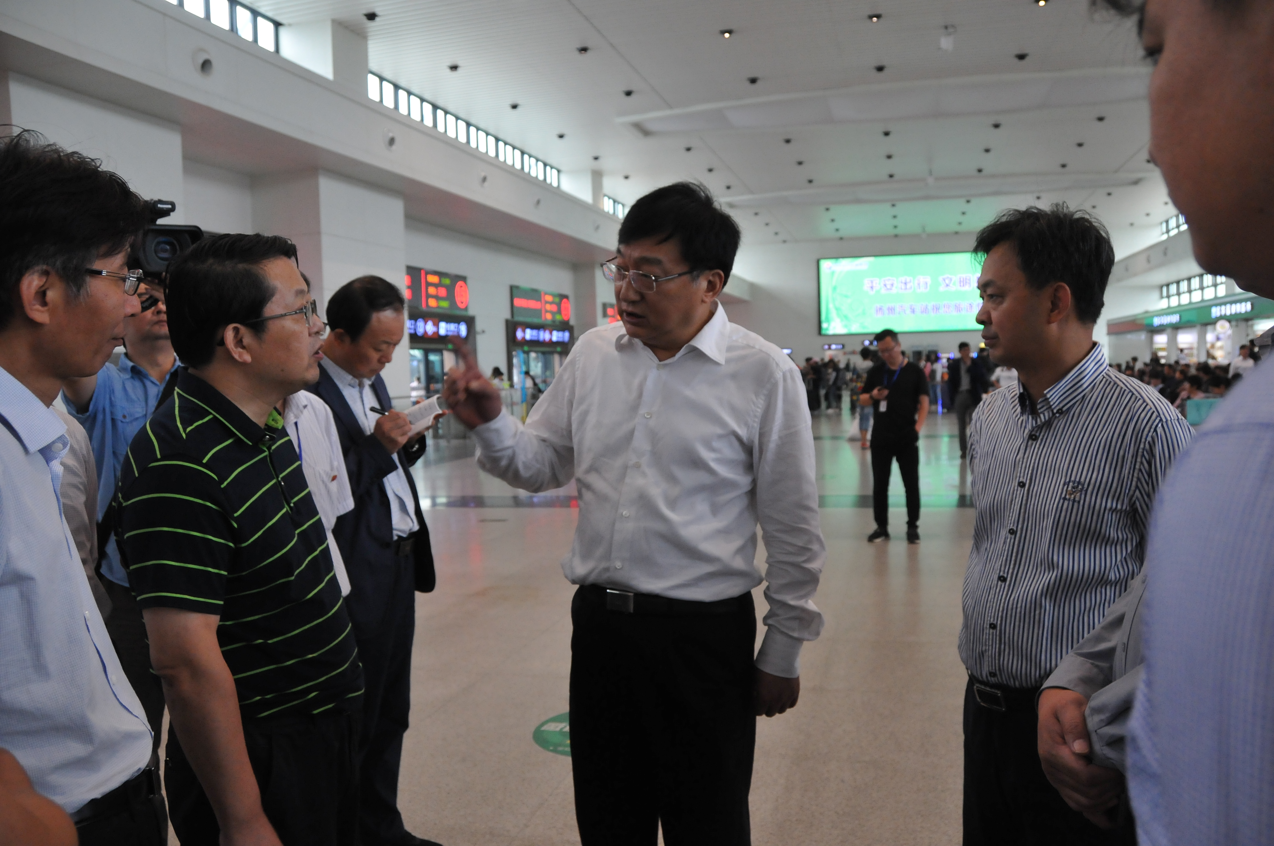 9月30日上午,揚(yáng)州站人流如織,車(chē)站已經(jīng)提前進(jìn)入節(jié)日運(yùn)輸模式。上午11時(shí)許,揚(yáng)州市副市長(zhǎng)丁一帶領(lǐng)相關(guān)人員來(lái)到西部樞紐揚(yáng)州客運(yùn)站,檢查節(jié)日安全工作。揚(yáng)州市交通局局長(zhǎng)徐斌,揚(yáng)州市交通產(chǎn)業(yè)集團(tuán)董事長(zhǎng)、總經(jīng)理、黨委書(shū)記凌衛(wèi)東,揚(yáng)汽集團(tuán)黨委書(shū)記、副總經(jīng)理韓滿(mǎn)陵等陪同。