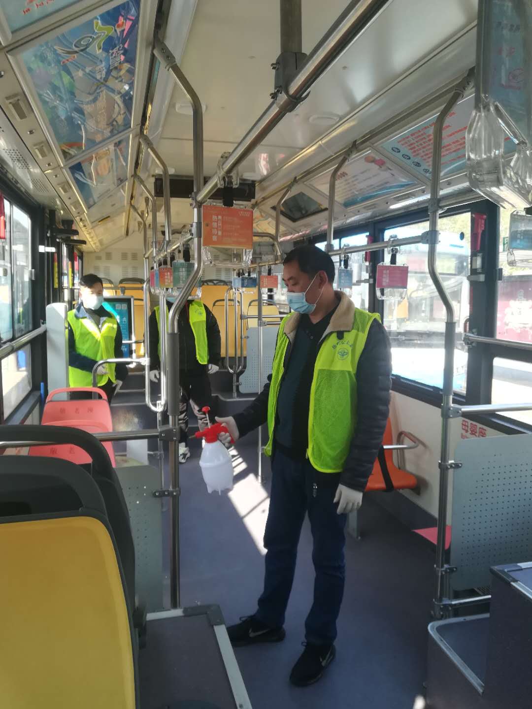 崗前培訓(xùn)后,志愿者們分工明確,在公交站的志愿者們拎著手持噴壺對(duì)待恢復(fù)營(yíng)運(yùn)線路車(chē)輛的地面、扶手、座位進(jìn)行消毒工作,確保做到不留死角;在車(chē)站的志愿者們,協(xié)助車(chē)站工作人員做好旅客引導(dǎo)工作,測(cè)量體溫、以及掃碼登記等。