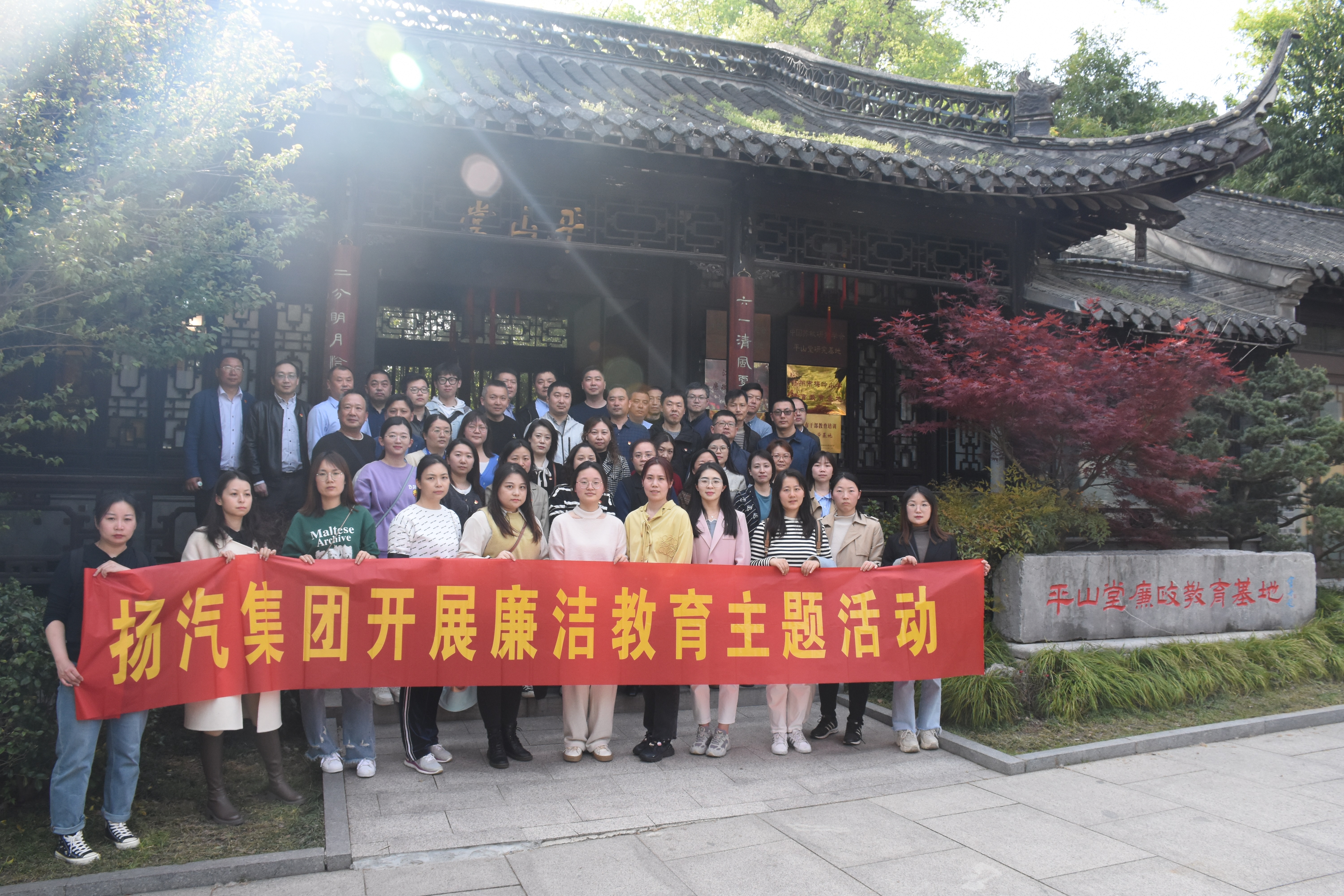 為學(xué)習(xí)貫徹黨的二十大精神,進一步提高干部職工廉潔意識,大力營造廉潔誠信、風(fēng)清氣正的良好氛圍,4月10日,揚汽集團組織部分中層干部、后備骨干、新進大學(xué)生50余人前往平山堂廉政教育基地參觀學(xué)習(xí),實地接受廉潔教育。