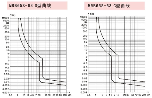額定運(yùn)行短路分?jǐn)嗄芰cs:(6“40A) 6000A,(50“63A) 4500A。過電流保護(hù)特性